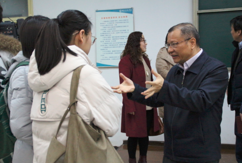 温兴生指出新时代就是当代中国的历史方位,这是十九大报告提出的重要政治论断。他从把握新时代的发展趋势、深远意义、变与不变三个方面进行了讲解。温兴生用翔实的数据、典型的案例、甚至是自己在埃塞俄比亚的工作经历来说明当代中国的发展趋势是前所未有地靠近世界舞台中心,前所未有地接近实现中华民族伟大复兴的目标,前所未有地具有实现这个目标的能力和信心。听了温兴生的讲解后,很多同学在发言中由衷地感叹:中国能取得今天的成就关键就在于党的坚强领导!中国特色社会主义进入新时代的意义是什么?温兴生从迎来了实现中华民族伟大复兴的新征程,开辟了科学社会主义在中国发展的新境界,提供了发展中国家实现现代化的新方案三个方面进行了生动讲解。