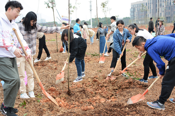 校长董仕节在讲话中指出,我校已建成生态优美、人文智慧相融相生的现代化校园,为经院学子创造了良好的学习环境。十年树木,百年树人,植树是功在当代、利在千秋的事业。通过亲近自然、了解自然、保护自然,培养学生绿色发展理念,让学生成为绿色校园的参与者和践行者。
