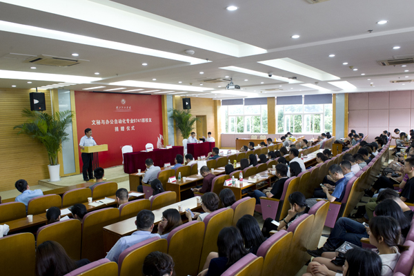 相关职能部门、各学院相关负责人和老师,文秘与办公自动化专业9741班校友代表、学生代表参加仪式。