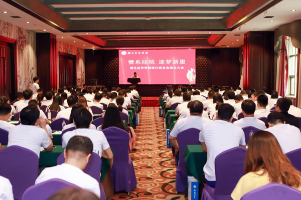 浙江校友会筹备组刘晓峰介绍了浙江校友会的筹备情况。严俊华代表校友总会宣读《关于同意成立湖北经济学院浙江校友会的批复》文件,会议表决通过了《湖北经济学院浙江校友会章程》,选举产生了第一届理事会,朱祖烈、陈成天、阮骢方当选名誉会长,万达当选会长,刘晓锋当选常务副会长,马荣、刘培意、吴自然、张冬青、张樑、陈汇森、陈官平、范金坤、卓朝誉、倪梁当选副会长,鲁秋芬当选秘书长。