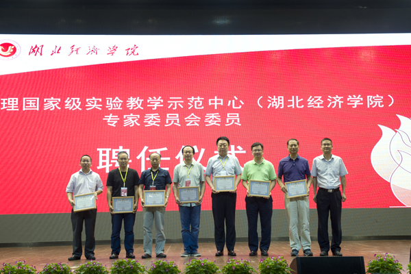 美国新墨西哥大学安德森管理学校董事会讲席教授罗欣,教育部高等学校电子商务类专业教学指导委员会委员、武汉大学信息管理学院教授张李义,华中科技大学管理学院教授鲍玉昆,华中师范大学教授、中国电子商务建设协作组常务理事王学东,华中师范大学信息管理学院教授谭春辉,武汉理工大学经济学院副院长陈冬林,中南财经政法大学教授、武汉工商学院副校长刘腾红,武汉纺织大学管理学院院长夏火松,教育部高等学校电子商务类教学指导委员会委员、东北财经大学教授杨兴凯,湖北大学商学院教授杨礼茂,中国地质大学(武汉)经济管理学院副教授朱镇,中国医疗设备信息网CEO兼广利医疗股份有限公司总经理任晓光12位专家受聘为我校实验教学中心专家委员会委员,何慧刚为他们颁发聘书。
