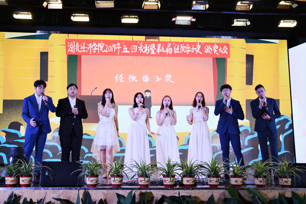 一声我们都在奔跑,一句我们都是追梦人,歌舞《我们都是追梦人》道出青年学子追梦激情。诗歌《不舍经院》回忆了2019届毕业生在经院学习生活的四年时光,表达出对经院不舍的浓厚离别思绪。古典舞《纸扇书生》,表演者们着古装、持纸扇,一张一合、一颦一簇之间,尽显古色古香。情景朗诵《我们的青年时代》鼓舞着毕业生们不惧未来,奋勇前行。一首《大碗宽面》将当下流行的Rap说唱和传统民乐相结合,别有一番韵味。场下观众难掩热情,纷纷打开手机闪光灯,伴随着音乐摇摆。由商守卫老师和朱迪同学带来的《我和我的祖国》唱响了经院人对祖国的深切热爱,引发全场观众大合唱。西洋器乐演奏《土耳其进行曲》洋溢着青春活力,歌曲《我的未来不是梦》展现了经院学子的追梦赤子心。现代舞《舞动经院》演绎经院学子花样年华,舞动经院,舞动青春。校友、湖北省青马班学员杨霆威、杨鑫、陈楝、罗明扬带来《最难忘的毕业歌》,服务在基层的他们鼓励学弟学妹们永保初心,不畏坎坷,有所担当,锤炼自己,让青春闪光。