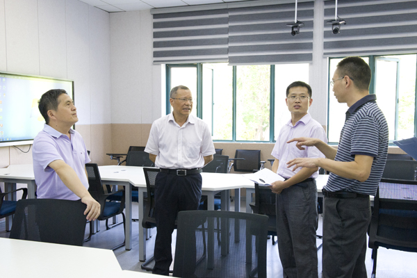 在二号教学楼,温兴生强调,智慧教室改造项目是学校教学手段上的一次“革命”,是打造一流本科教育的具体行动,代表了学校当前教育信息化建设的高水平,要充分发挥作用。同时,要做好服务和管理,在全校师生中加强宣传与指导,确保开学后高效使用。