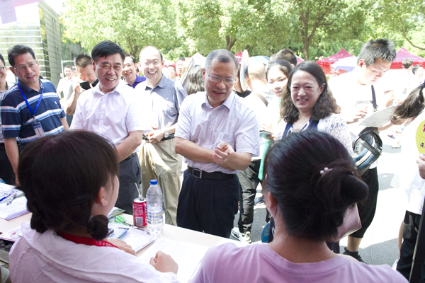 校党委书记温兴生、校长董仕节、党委副书记刘大洪、副校长何慧刚、党委常委张以林带领相关部门负责人现场察看迎新工作情况,了解各单位迎新工作动态,看望报到的新生和家长,慰问参与迎新工作的师生员工。