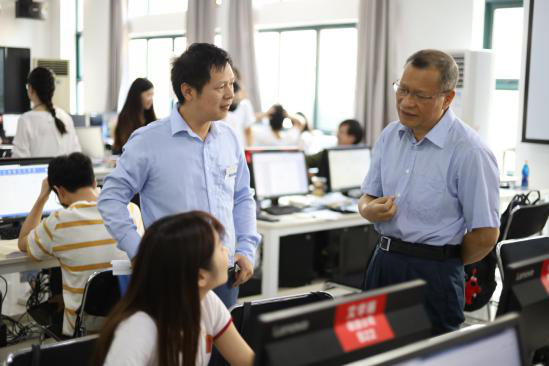 本网讯 9月19日,党委书记温兴生一行到实验教学中心,深入综合仿真实习教学现场观摩,并与师生交流,了解综合仿真实习教学情况。