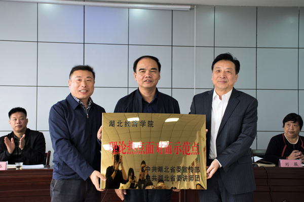 本网讯 11月6日,省委宣传部、省委讲师团、湖北经济学院“理论热点面对面”示范点授牌仪式在随州市曾都区西城办事处举行。省委讲师团一级调研员胡秋春、四级调研员姚官华,校党委常委张以林,我校马克思主义学院、随州市曾都区有关同志参加。随州市委宣传部副部长王晓义主持。