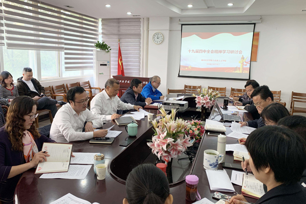 温兴生指出,要把十九届四中全会精神的宣讲与“不忘初心、牢记使命”主题教育相结合,本次活动不仅是一次集体备课、也是一次政治学习和科研选题交流会,在学习贯彻落实会议精神方面,大家要做到“认识高、行动快、氛围浓、效果好”。马克思主义学院要发挥教学基地、研究高地、思想阵地的作用,按照“八个讲清楚”的要求,第一时间推动十九届四中全会精神进课堂,有效开展集中宣讲,确保我校学习领会贯彻十九届四中全会精神落到实处。