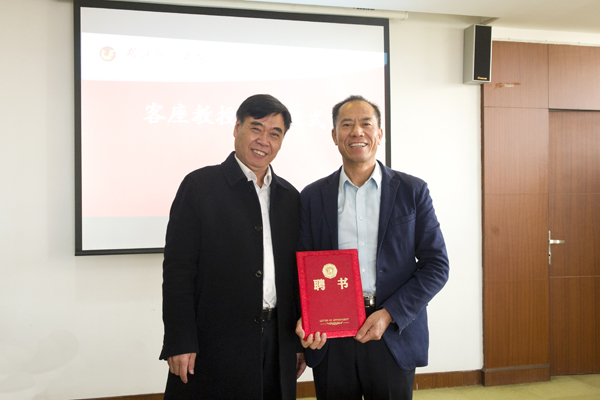 本网讯 12月12日,学校举行李建全客座教授聘任仪式。校长董仕节为李建全教授颁发聘书。副校长何慧刚主持仪式,湖北稳健医疗有限公司总经理纪华、学校相关学院及职能部门负责人、部分学生代表参加。