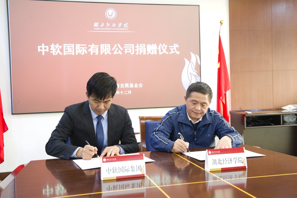 本网讯 12月20日,湖北经济学院-中软国际人工智能创新中心捐赠仪式在我校举行。中软国际有限公司向我捐赠总价值约200万元的软硬件产品,联合建设人工智能创新中心。校长董仕节、教育发展基金会理事长吴显富、中软国际教育集团高级副总裁兼CTO徐建民、武汉中软卓越科技有限公司总经理周星出席捐赠仪式。