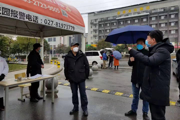 本网讯 1月26日,校党委书记温兴生深入校内重点部位,检查指导新型冠状病毒感染的肺炎防控工作,看望慰问春节期间坚守在岗的一线工作人员。学校办公室、保卫处、后勤集团、亿优公司、校医院等部门负责人参加。