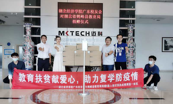 驻村工作队队长严俊华介绍了我校开展教育扶贫的总体情况。学校党委一直高度重视教育扶贫工作,驻村工作队认真落实学校教育扶贫精神,得知鹤峰县初三年级复学体温检测设备不足,主动对接县教育局,依托校友资源,号召校友为教育扶贫办实事、做好事。广东校友会积极响应,珠海迈科智能科技股份有限公司副总经理陈新江、蚂蚁科技(广州)有限公司总经理黎子源、广州市匠心设计装饰有限公司总经理费逸群3名校友为鹤峰县教育局捐赠9套人脸识别热成像测温一体机,用于乡镇中学复学时师生体温检测,筑牢师生生命安全防火墙。