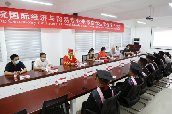 本网讯 6月16日,我校首届来华留学生毕业典礼暨学位授予仪式举行。校长董仕节出席。国际教育学院、经济与贸易学院负责人及相关教师代表和2020届留学毕业生参加。