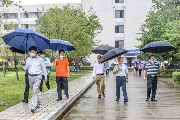 校党委书记温兴生、校长董仕节、党委常委张以林带领相关部门负责人现场查看迎新情况,看望报到的新生和家长,慰问参与迎新工作的师生员工,了解各单位迎新动态。