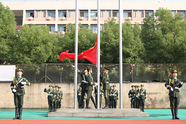 正逢国家烈士纪念日,升旗仪式上,伴随着国歌声,五星红旗冉冉升起,全体师生面向国旗行注目礼,全体教官行军礼,向为中国人民解放事业和共和国建设事业英勇献身的烈士致以崇高的敬意。