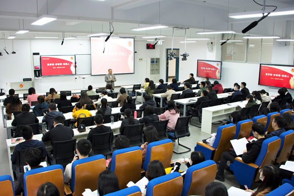 本网讯 10月7日,第六期青年教师专业基本能力培训班开班。校党委书记温兴生为70多名新进青年教师讲授“不忘初心,牢记使命——争做真学者·好老师·经院人”。
