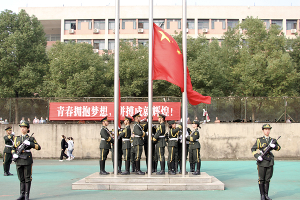 在庄严的国歌声中,五星红旗冉冉升起。随后,校旗、会旗也缓缓升起。