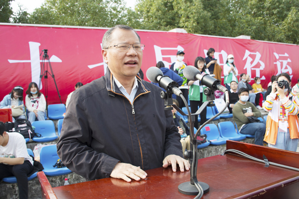校体育运动委员会主任、副校长何慧刚致辞。他指出,高校培养德智体美劳全面发展的社会主义建设者和接班人,体育教育是学校教育的重要组成部分。我校一贯重视体育工作,始终坚持体育教学模式创新与群体活动竞赛两手抓,以提高体育教学质量为中心,以课外体育活动和课余体育竞赛为助力,广泛开展体育特色活动,学校体育工作取得长足进步。他鼓励大家养成体育锻炼的良好习惯,走下网络、走出宿舍、走向操场,充分利用学校体育资源、健身场地,参加各类群众性锻炼活动。他希望运动员大力弘扬“更快、更高、更强”的奥林匹克精神,树立“安全第一、友谊第一、比赛第二”的比赛意识,顽强拼搏,奋勇争先,赛出水平,赛出风格。