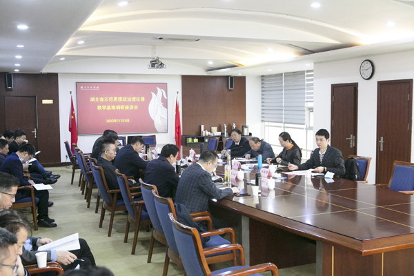 本网讯(通讯员 丁君涛 摄影 曾雅欣)11月3日,以武汉大学孙居涛教授为组长的湖北省示范思想政治理论课教学基地专家调研组一行来校,实地考察调研马克思主义学院建设情况。校领导董仕节、刘大洪、何慧刚、张以林,思想政治理论课建设领导小组成员单位负责人、马克思主义学院领导班子成员参加座谈会。