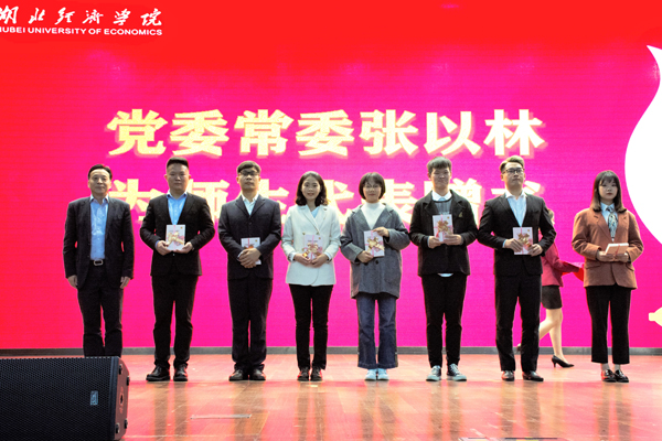 张以林为师生代表赠送《点点萤火,人间星河——经院人的抗疫故事》一书。