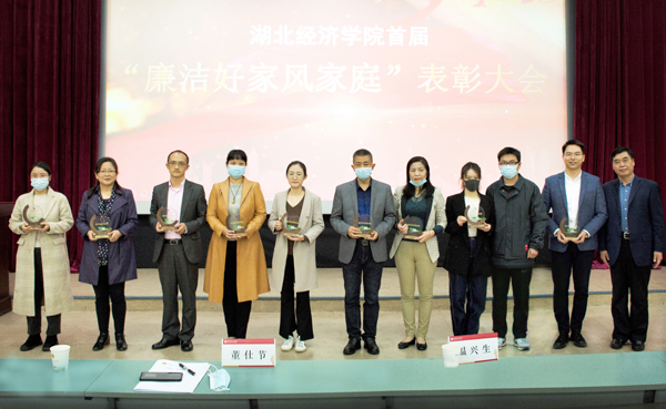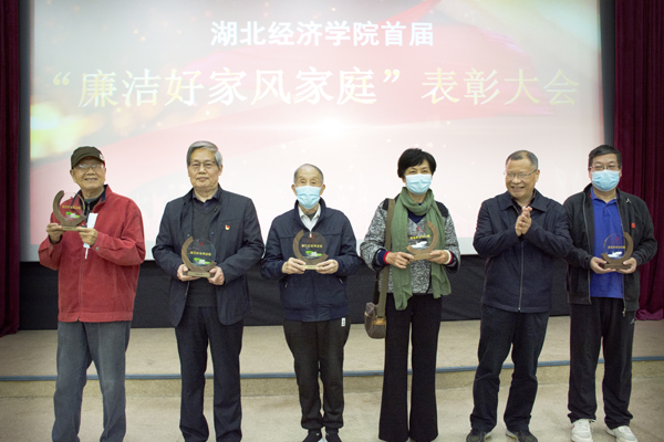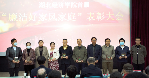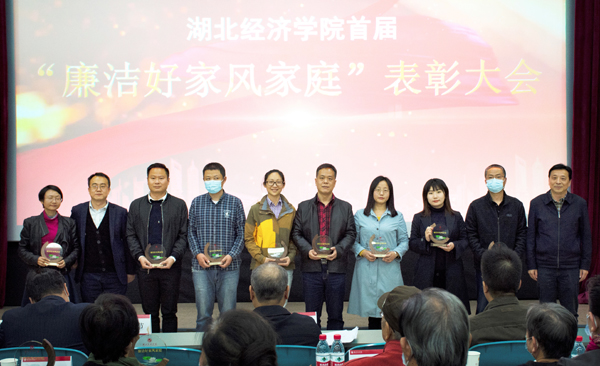 校党委副书记刘大洪宣读了首届“廉洁好家风家庭”名单,校领导为获奖家庭颁奖。