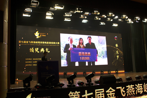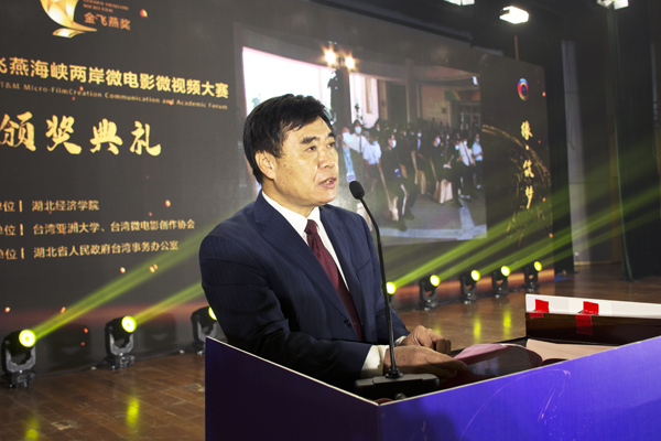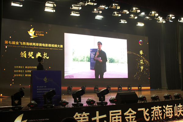 疫情常态化防控背景下,颁奖典礼首次采取网络视频连线,在湖北经济学院与台湾亚洲大学两个会场同步举行。湖北省台办副主任邢军志,湖北经济学院党委书记温兴生、校长董仕节、副校长何慧刚,台湾亚洲大学副校长邓成连,台湾世界新闻传播协会会长刘立汉,台湾亚洲大学资讯传播学系系主任陈士农,台湾微电影创作协会理事长、昆山科技大学学务长张世熙,华中科技大学新闻学院教授、博导陈先红,中国传媒大学新闻传播学部教授、博导张雅欣,台湾艺术大学广播电视学系教授、台湾广播电视金钟奖评审委员许北斗,武汉天堂映画文化传播公司创始人董松岩、姚明,武汉聚新传媒有限公司总经理沈冯聘,台湾亚洲大学信息传播学系助理教授、台中市海峡两岸交流协会顾问张建人,我校新闻与传播学院师生参加。