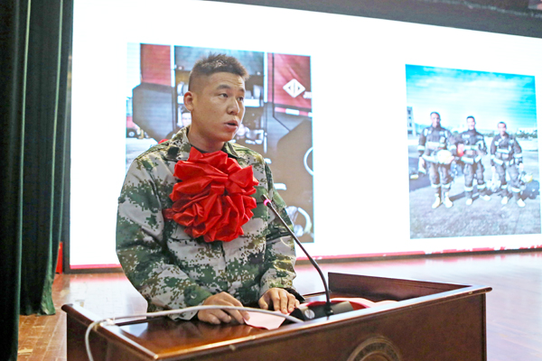 视觉传达Q1841蒋超作为退伍军人,他讲述了自己对“赴汤蹈火,竭诚为民”的理解。作为浙江省消防救援总队的一名消防员,一千八百多个日夜,他和战友们出警五千余次,营救转移人民群众500余人次。身为头车班长的他始终冲锋在前,心系人民群众安危,顺利完成各项救援任务。面对复学,蒋超说:“退伍不褪色,今后我将不忘初心,继续前行,在完成学业的同时,为母校为社会为国家贡献力所能及的力量。”