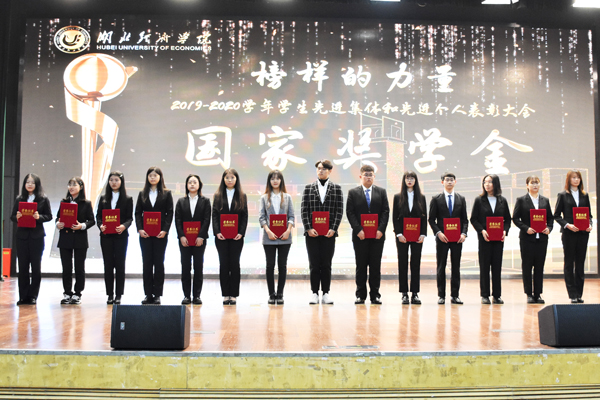 校党委副书记刘大洪宣读《关于表彰2019-2020学校先进集体和先进个人的决定》表彰文件。国贸1942班等34个班级获“先进班集体”称号,方彬彬等71名学生获“三好学生标兵”称号,陈维怡等948名学生获“三好学生”称号,卢琪龙等365名学生获“优秀学生干部”称号;王凡等3228名学生获藏龙学子奖学金;宋万等10名学生获来华留学生奖学金;杨颖等7名研究生获2020年研究生国家奖学金;张雪茹等76名研究生获一等学业奖学金,光瑾等133名研究生获二等学业奖学金,徐一帆等214名研究生获三等学业奖学金。