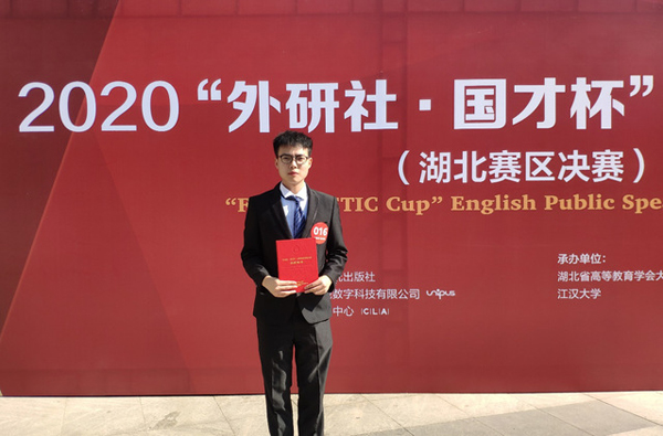 本网讯 日前,2020“外研社·国才杯”全国英语演讲大赛总决赛落幕。工商管理学院工程Q1842任燕秋同学以湖北赛区季军进入全国总决赛,斩获总决赛三等奖,同时获得大赛学术英语演讲专项赛三等奖。外语类1945龚宇琪同学获全国网络赛复赛一等奖。指导老师为外国语学院侯香浪、何柳老师。