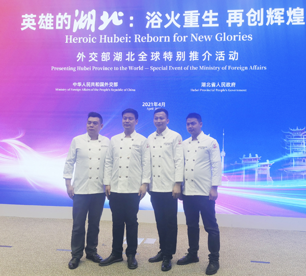 湖北楚菜研究院受湖北省委外办邀请参加“湖北特色美食月”活动,进行为期一个月的楚菜推介。卢永良教授担任总顾问,邹志平教授带队,产业教授王波,邹志平国家级技能大师工作室何渊、董新洲、韩号参加。