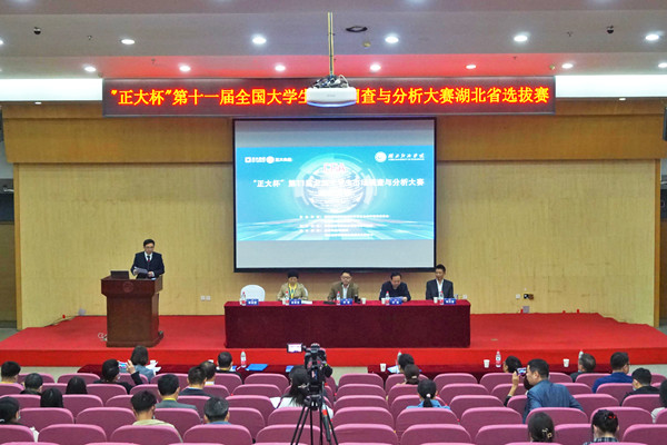 本次大赛由教育部高等学校统计学类专业教学指导委员会、中国商业统计学会共同主办,湖北经济学院信息管理与统计学院承办。来自中南财经政法大学、武汉大学、华中科技大学、武汉理工大学、湖北大学等32所高校197支参赛团队参加了本次大赛。湖北省统计局、国家统计局湖北调查总队、江夏区统计局、省内各高校以及问卷网等相关政府、高校和企业的专家评委出席开幕式。