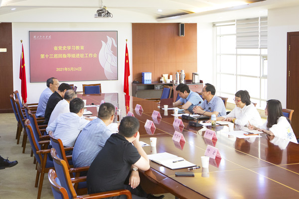 本网讯 (记者 张艳伟 摄影 曾雅欣)5月24日,省党史学习教育第十三巡回指导组进驻工作会召开。省党史学习教育第十三巡回指导组组长、省文联党组成员、副主席王永平,指导组成员黄权、侯礼平、陈柯帆出席。校党委书记、党史学习教育领导小组组长温兴生主持,校领导鲁晓成、何慧刚、张国安、付宏出席。
