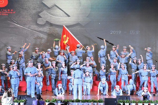 “这是美丽的祖国,是我生长的地方!”汇演活动在全场高声合唱《我的祖国》中落下帷幕,伴随着歌声,国旗护卫队在观众席上方拉开长17米、宽11米的党旗,形式新颖,气势恢宏,寓意薪火相传。