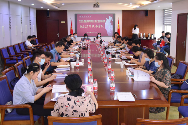 本网讯 7月15上午,江夏区委统战部与驻区高校统战部统战工作联席会议在我校行政楼四楼会议室召开。江夏区委常委、统战部部长魏雄伟,区相关部门领导以及驻区21所高校统战工作负责人出席会议。校党委副书记兼统战部部长刘大洪出席并致辞。