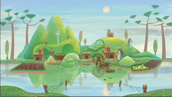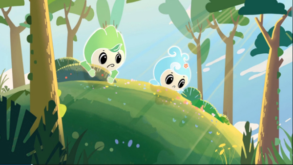 舒慕晴团队将吉祥物“小山”“小水”创意为净化山水的精灵,通过小精灵视角展现中国经济发展进程中由破坏环境到保护环境的过程,充分表现了人与自然和谐相处,“绿水青山就是金山银山”的环保理念。