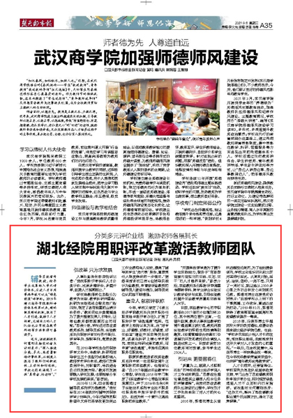 辅导员能晋升教授,指导学生成果纳入学术评价体系,引进人才不用等两年就可以走“绿色通道”评职称。2019年湖北经济学院教师评价体系改革以来,新的制度新的机制,激活了人才引进、鼓励了人才创新,充满活力的人才队伍也让学校在教学科研等方面取得可喜进步。