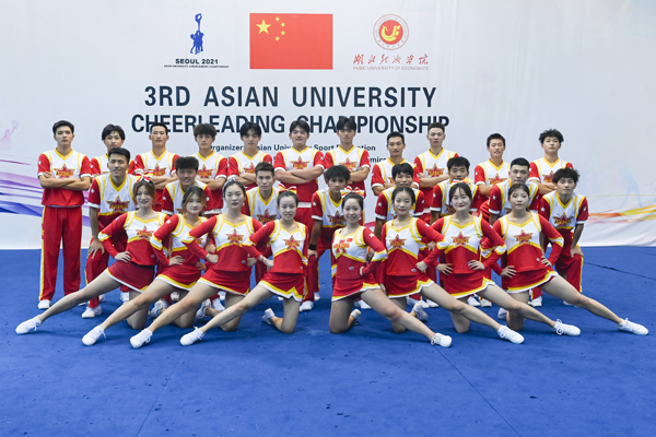 中国大学生体育协会组织专家团队根据各院校在国际、国内赛事所获成绩积分排名,经过认真筛选,最终委派我校、华东师范大学、北京体育大学等九所高校组队代表中国与亚洲5个国家438名运动员同台竞技。作为唯一的非专业院校,我校Amazing啦啦队收到委派任务后迅速集结,克服疫情困难,凝心聚力,刻苦训练,团结奋战。