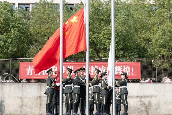 在庄严的国歌声中,五星红旗冉冉升起。随后,校旗、会旗也缓缓升起。