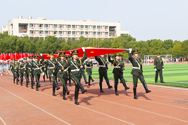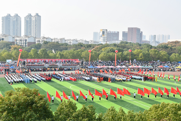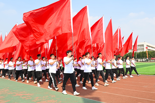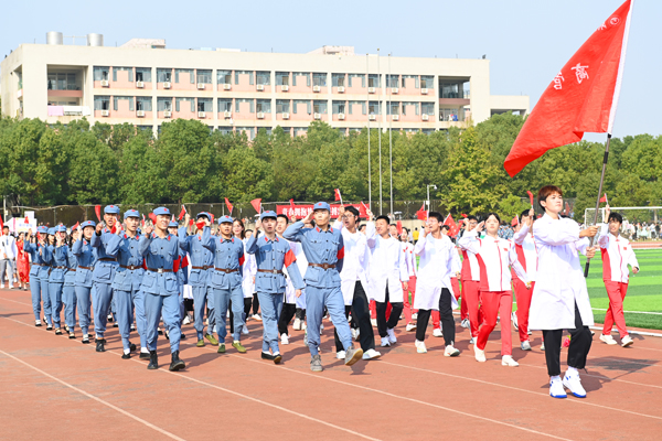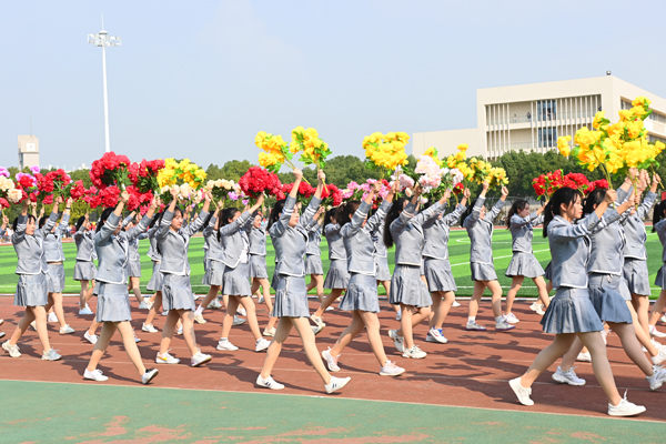 伴随着运动员进行曲,国旗护卫队昂首挺胸,步伐铿锵,护送国旗、校旗和第十八届体育运动会会旗经过主席台。身着浅灰色衣裙的鲜花方阵队员手持缤纷的鲜花,热情洋溢。红旗方阵队员挥舞着鲜艳的红旗,气宇轩昂。各学院运动员代表队有序入场,口号嘹亮,队形整齐,彰显青春风采。