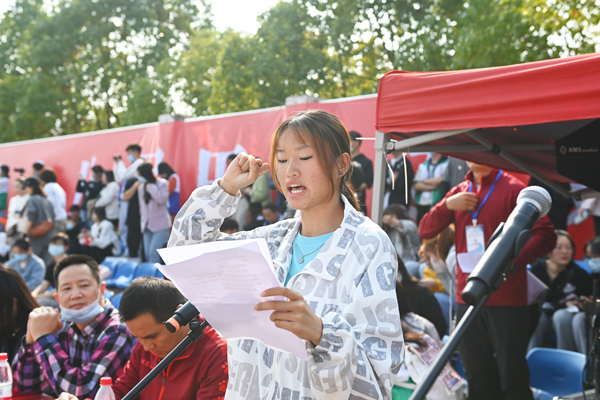 运动员代表谢雨菲、裁判员代表杨帅分别宣誓,表示尊重体育精神,遵守和服从竞赛纪律。