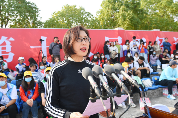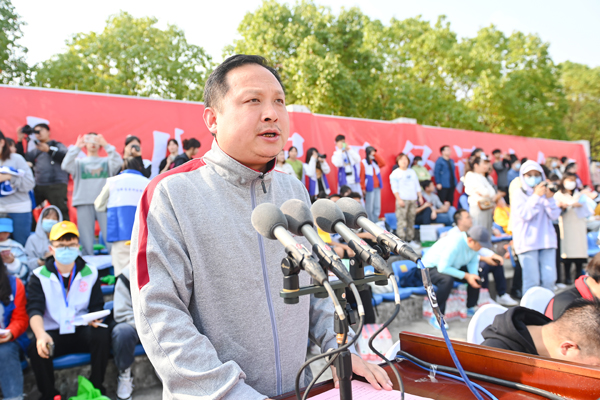 方洁致开幕辞。她指出,学校体育是实施素质教育、促进学生全面发展的重要途径,对于建设人力资源强国、实现中华民族伟大复兴的中国梦具有重要意义。我校一贯重视体育工作,始终坚持体育教学模式创新与群体活动竞赛两手抓,以提高体育教学质量为中心,以课外体育活动和课余体育竞赛为助力,广泛开展体育特色活动,学校体育工作取得长足发展。她希望全校师生以校运会为契机,进一步推广全民健身活动,普及科学健身和健康生活知识,带动更多人积极参与体育锻炼,将体育运动当成一种习惯,让身心健康成为一种追求,以饱满的热情、昂扬的斗志、勇于拼搏的信念、团结向上的精神投入到本届运动会中,把健康的体魄展示出来,把生命的活力表现出来。