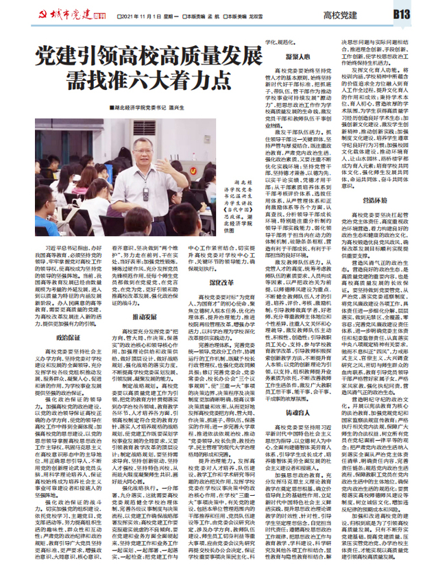 习近平总书记指出,办好我国高等教育,必须坚持党的领导,牢牢掌握党对高校工作的领导权,使高校成为坚持党的领导的坚强阵地。当前,我国高等教育发展已经由数量规模为考量的外延发展,进入到以质量为特征的内涵发展新阶段。办人民满意的高等教育,需要更高质量的党建,为高校改革发展注入新的活力,提供更加强有力的引领。