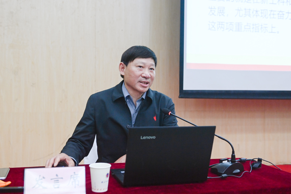 副校长鲁晓成作题为《奋力突破国家级科研奖 获批建设省级重点实验室》的报告。他表示,对照“十四五”规划确定的高成长高质量发展战略目标,最为重要的就是在新工科和新商科、科研平台和科研奖项方面实现突破性发展,尤其体现在奋力突破国家级科研奖,获批建设省级重点实验室这两项重点指标上。