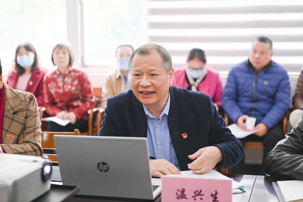 温兴生用四个关键词向与会人员解读了第四次党代会精神。