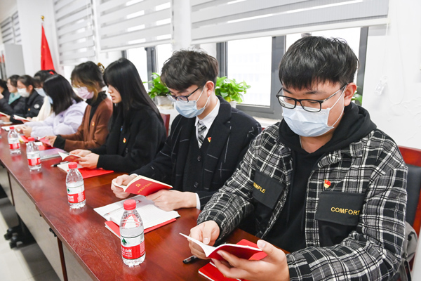本网讯 12月16日,全国样板党支部、财政与公共管理学院财税专业学生党支部与教师党支部举行“学党史、守初心、强信念、促担当”联合主题党日活动。财税支部全体师生党员参加。活动分为缴纳党费、奏唱国歌、重温入党誓词、诵读党章、理论学习、主题交流、主题党课、奏唱国际歌等9个项目。