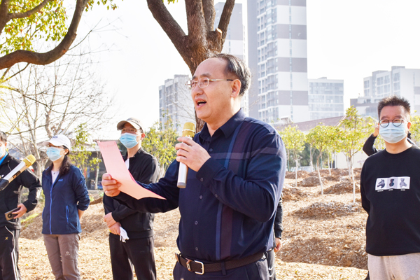副校长张国安主持活动。他指出,学校一贯重视绿化建设,通过二十年的建设,校园呈现出绿树成荫、蝶飞鸟鸣、绿水满堂、季季有花的生态美景。学校将打造“美在经院”名片,建设低碳智慧美丽校园,并将绿化建设与劳动教育有机结合,倡导形成人人爱绿的文明新风尚。