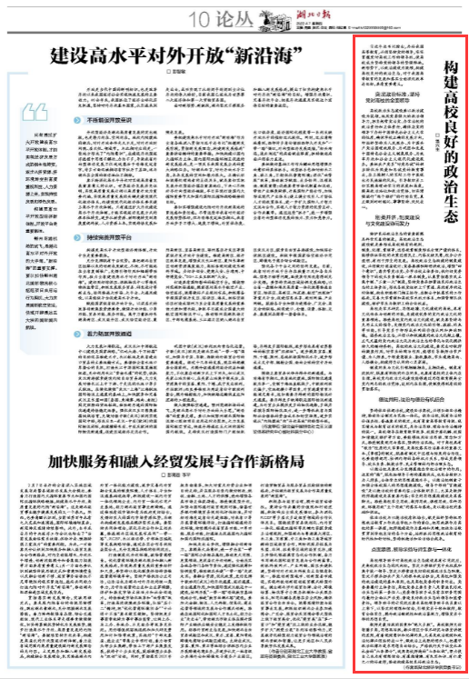 习近平总书记指出,办好我国高等教育,必须坚持党的领导,牢牢掌握党对高校工作的领导权,使高校成为坚持党的领导的坚强阵地。新形势下,以政治建设为统领,构建高校良好的政治生态,对于我国高等教育的发展和落实全面深化改革总目标,具有重要意义。