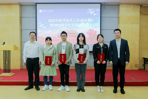 会上表彰了2021年征兵工作先进单位和先进个人。先进单位是金融学院、财政与公共管理学院、法学院、体育经济与管理学院,先进个人为孙光涛、张滋越、梅添淇、郭婷婷。先进个人代表郭婷婷介绍了体育经济与管理学院征兵工作的经验。