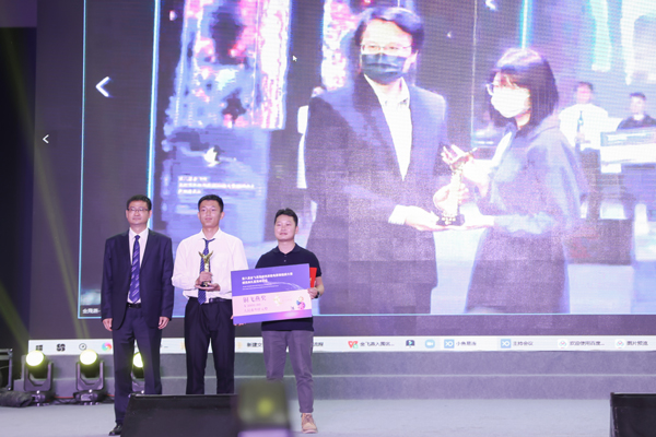 副校长付宏、华中科技大学网络传播与新媒体发展研究中心主任钟瑛为“最佳男主角”获奖者颁奖