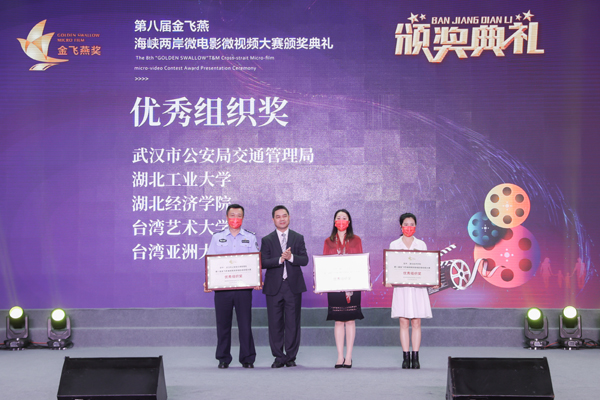 自去年6月份启动以来,共收到来自两岸100余所高校师生和社会微电影爱好者投递作品近500部,29部作品入围。经两岸评委共同评审,大陆作品《直到世界的尽头》获“金飞燕”奖;大陆作品《乌苏》、台湾作品《三颗马达》获“银飞燕”奖;大陆作品《发酵》、台湾作品《猫孩子》《给你,在最后》获“铜飞燕”奖。颁奖现场还公布了最佳音效奖、最佳摄影奖、最佳短视频创新奖、最佳导演奖、最佳男主角、最佳女主角6个单项奖获奖者名单。今年还新增设了优秀组织奖和最佳人气奖。