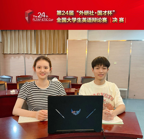 本网讯(通讯员 肖志宏) 6月10日至12日,第24届“外研社·国才杯”全国大学生英语辩论赛总决赛在线上举行。我校英语演讲辩论队成员胡上榜和杨晨欣组成的湖北经济学院代表队以华南赛区二等奖的成绩晋级总决赛,与来自全国华东、华西、华南、华北四大赛区的137支区赛晋级队伍同台竞技,经过三天八场激烈角逐,获总决赛一等奖。
